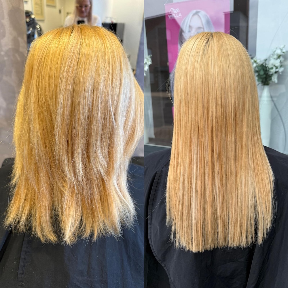Mit Cristal Gloss oder einer zusätzlichen Pastellcoleration geht es ans Finish. Das zaubert luxuriösen Glanz in Ihr Haar und gibt Ihrem neuen Look den letzten Schliff.